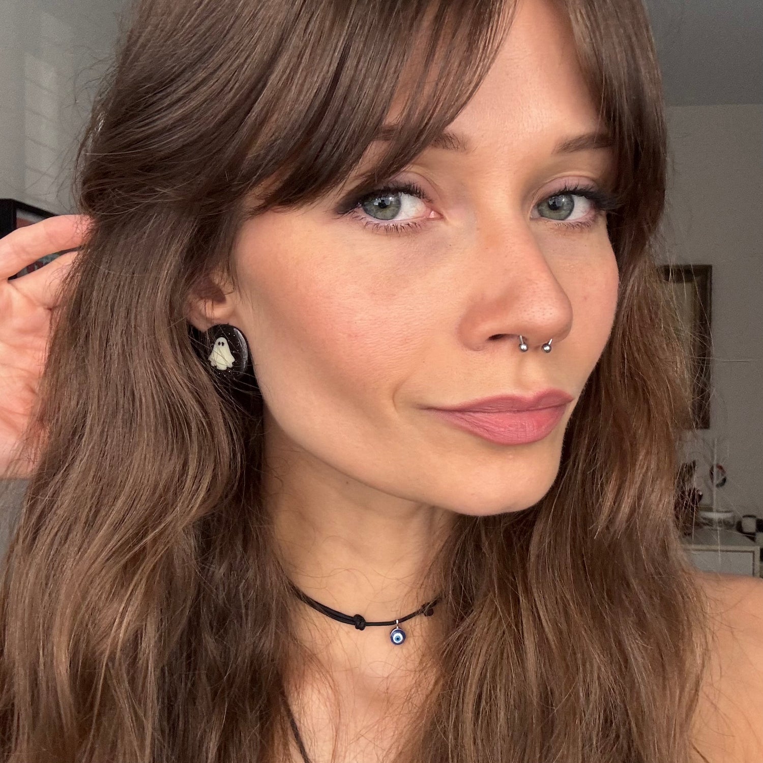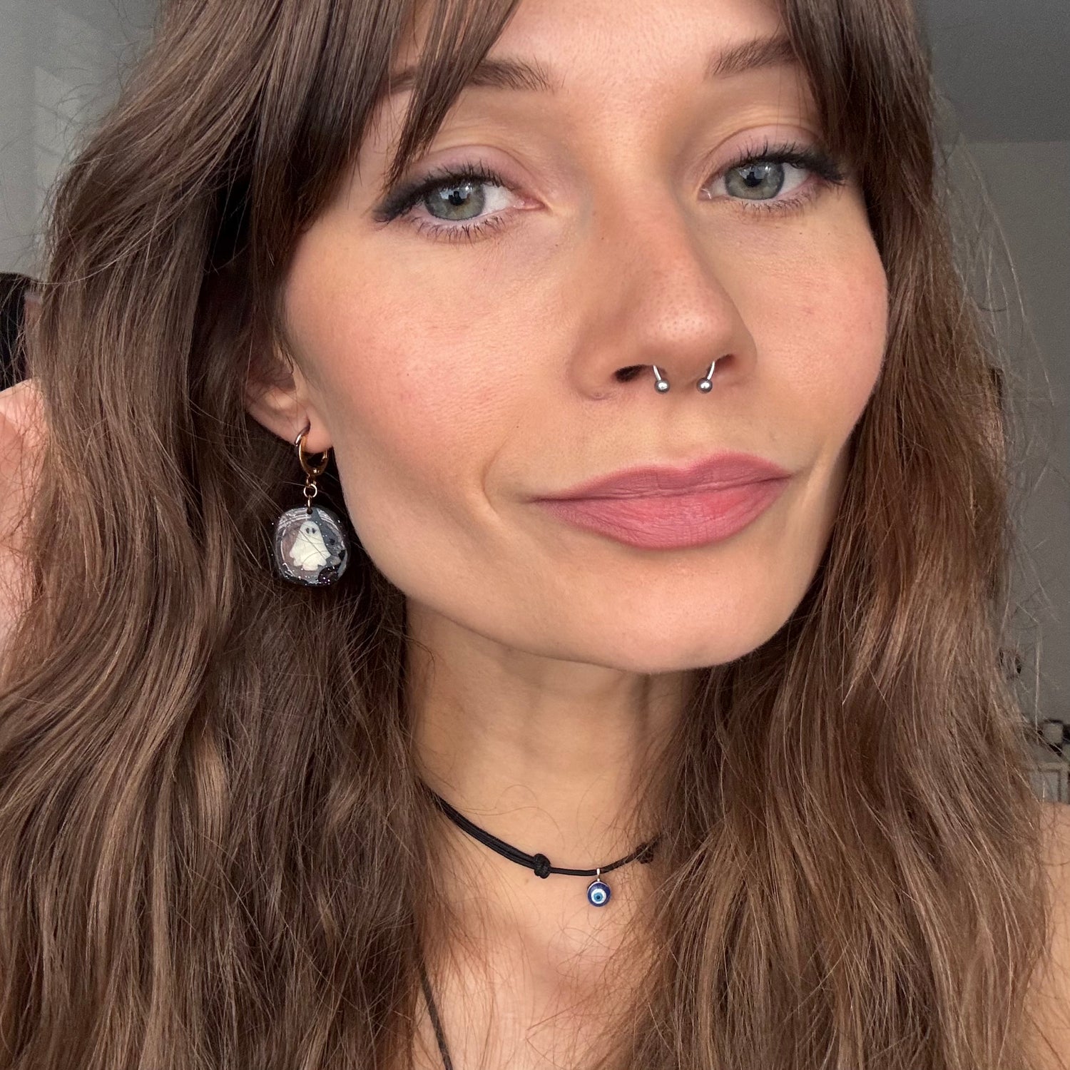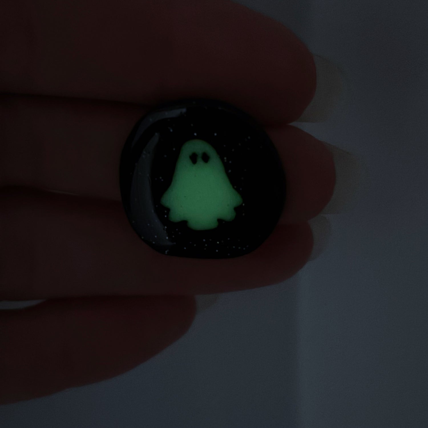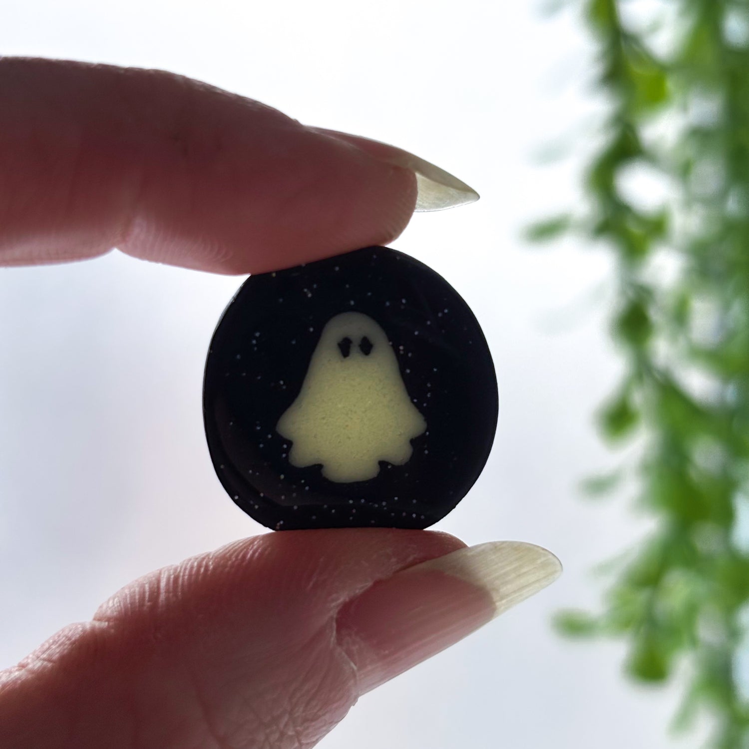 Handmade polymer clay and resin earrings. Semi-translucent ghosties glow in the dark!