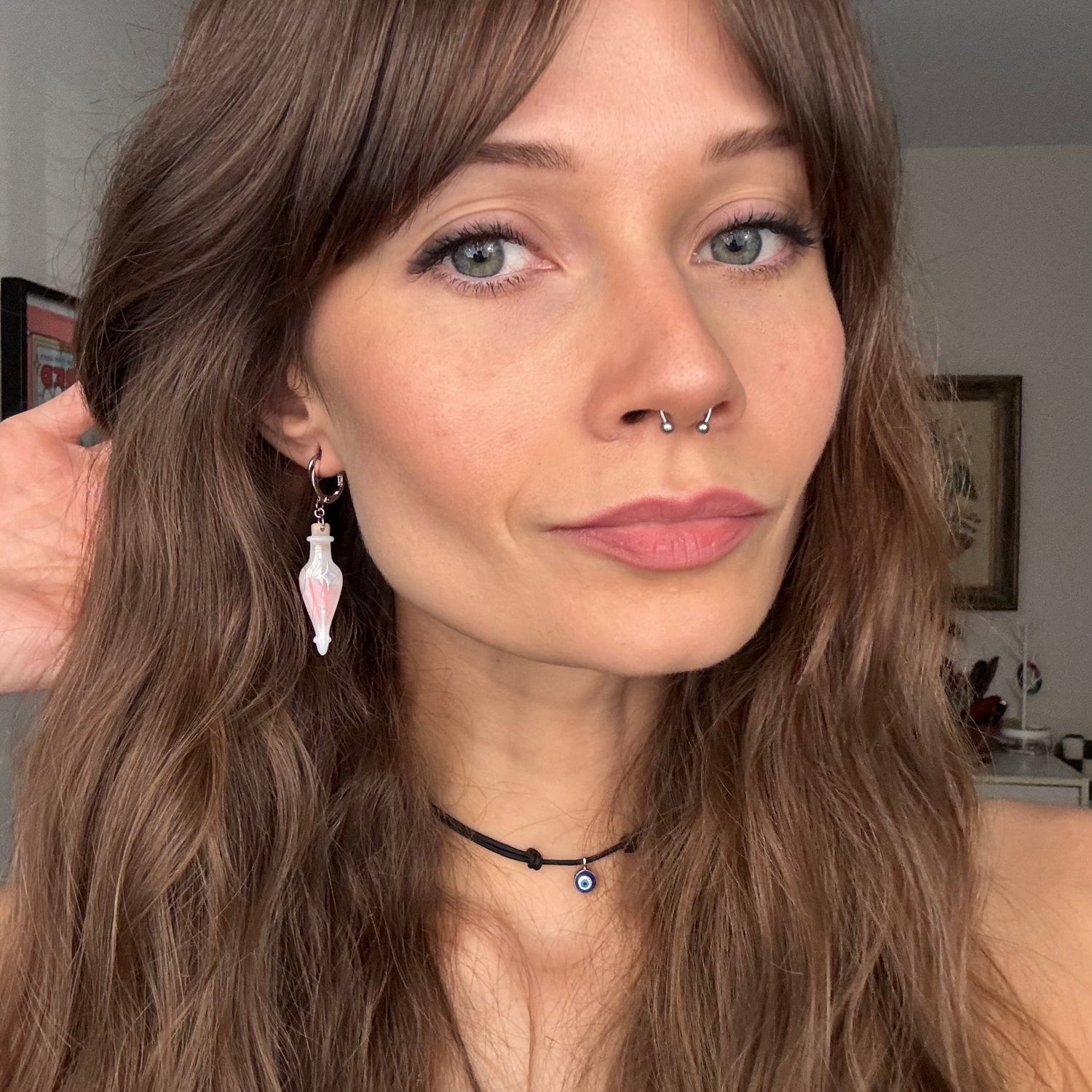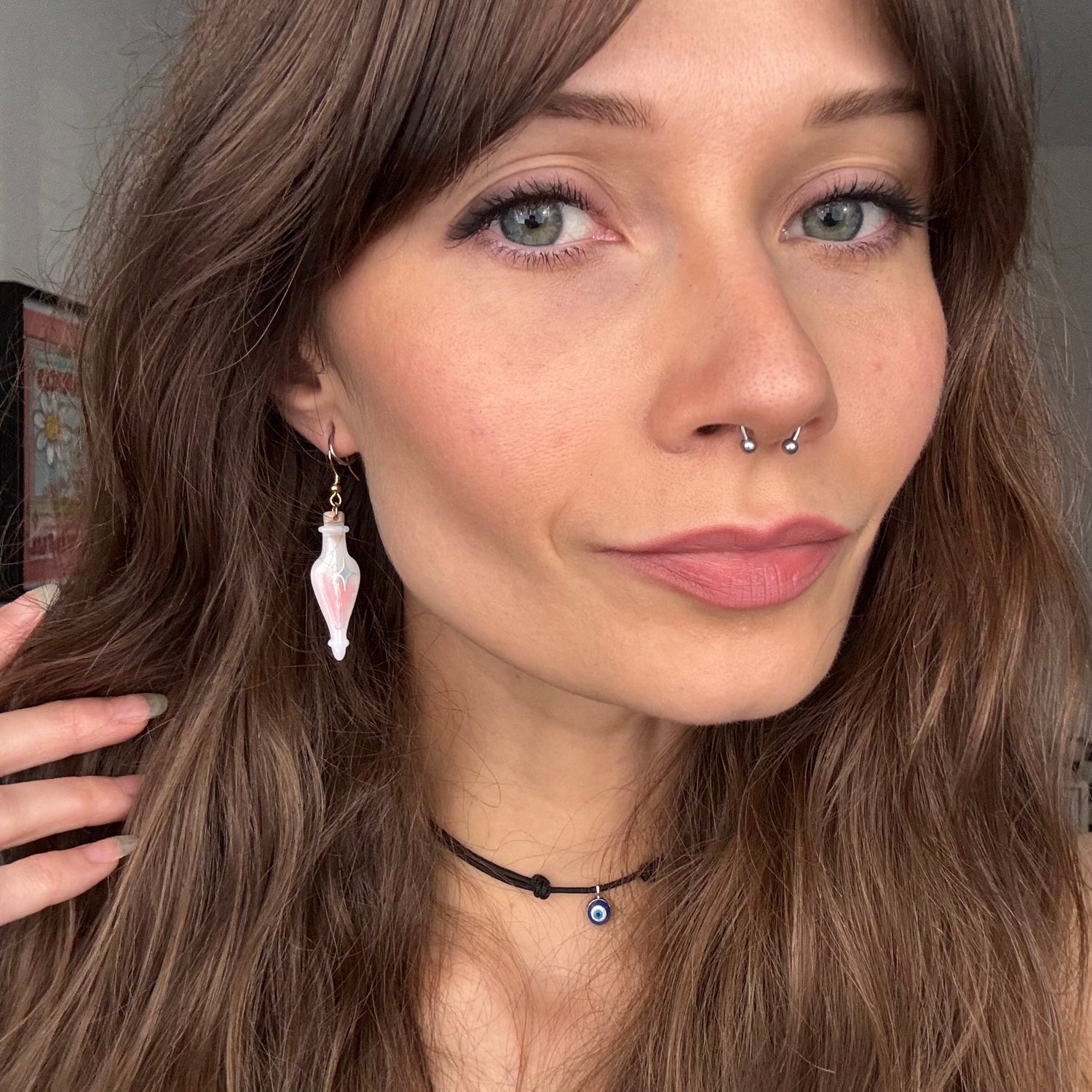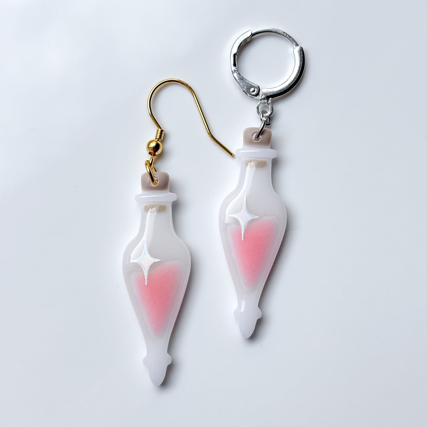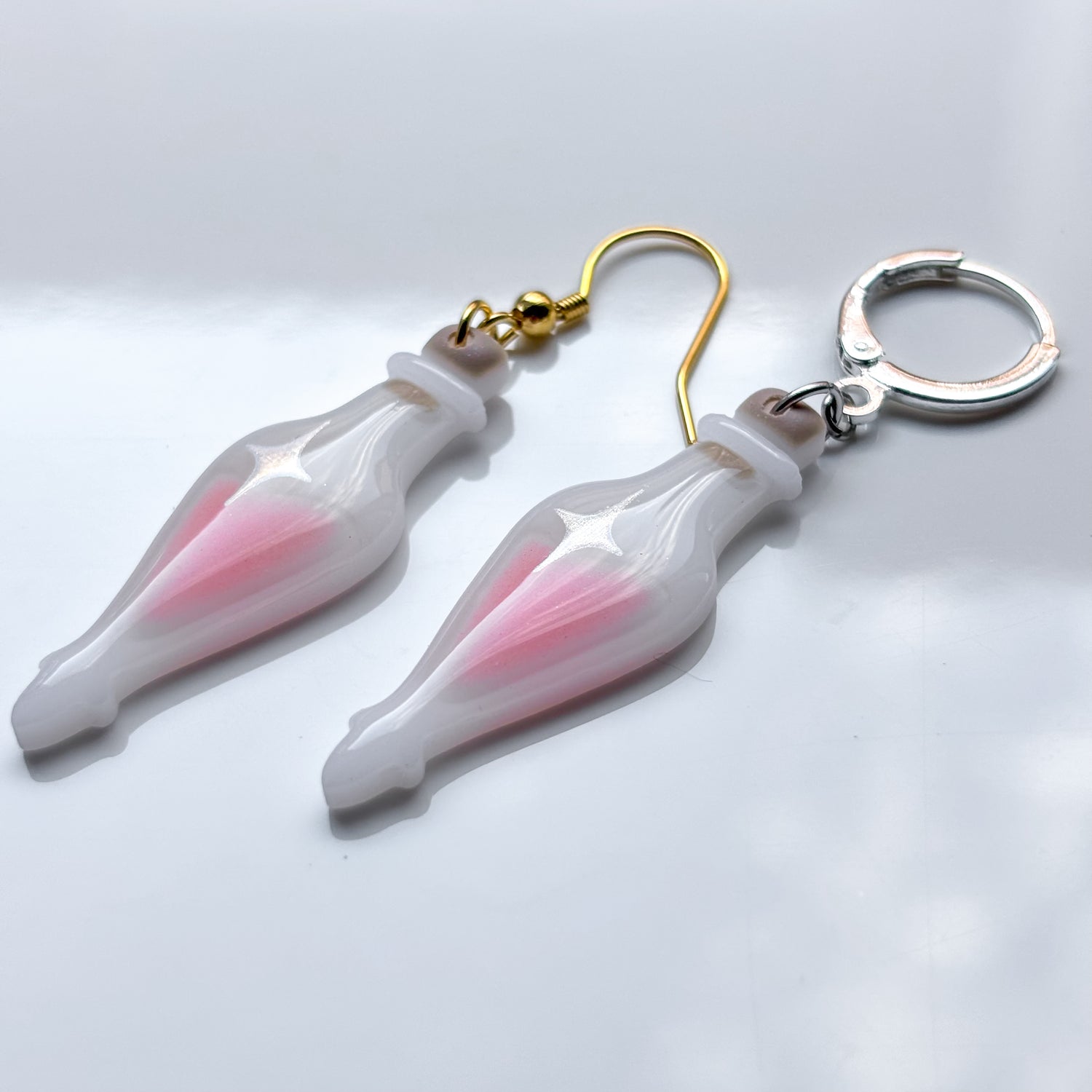 Handmade polymer clay and resin  earrings. Pink accents glow in the dark!